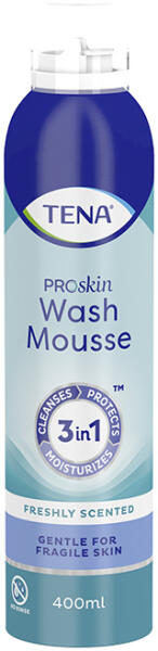 A TENA ProSkin mosdatóhab kíméletes megoldás a szappanos-vizes mosdatás helyett, és ideális gyakori bőrtisztításhoz, például az inkontinens betegek gondozása során. A friss illatú, 3 az 1-ben hab tisztítja, védi és hidratálja a sérülékeny, idős bőrt.